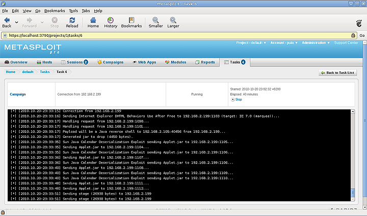 El pasado martes 19 de octubre apareció la noticia del lanzamiento de la suite de seguridad más famosa en su versión comercial, Metasploit Pro 3.5. Entre las nuevas características, destacan la habilidad de identificar, auditar y explotar aplicaciones web, lanzar campañas de ingeniería social a gran escala, evasión de antivirus e IDS, trabajo colaborativo y generar informes personalizados. Además, Metasploit Pro permite hacer VPN Pivoting en capa 2, lo cual nos crea una interfaz virtual dentro de la red remota desde la que poder lanzar cualquier herramienta de seguridad.