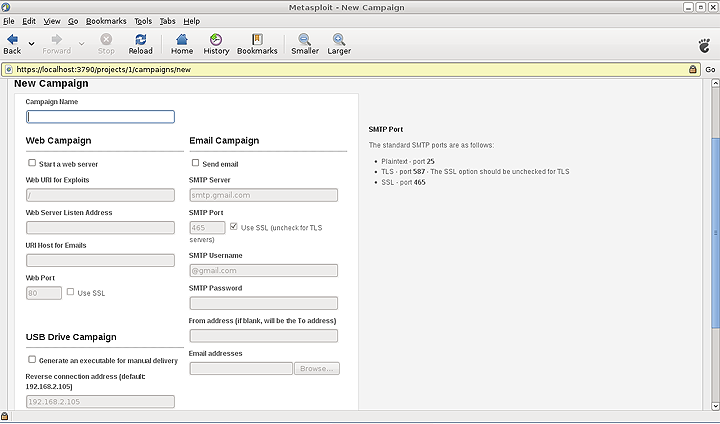 En la captura se ven las diferentes opciones para lanzar la campaña. Por ejemplo podemos configurar un envío masivo de correos electrónicos que redirijan a nuestra página especialmente creada. En una página posterior nos permite personalizar la página que se mostrará; aquí entra la habilidad o imaginación de cada uno para realizar un site creíble. También dispone de la opción de lanzar una campaña USB que nos creará los archivos necesarios para “dejar olvidado” un usb en lugares estratégicos. Aquí un ejemplo de campaña exitosa: